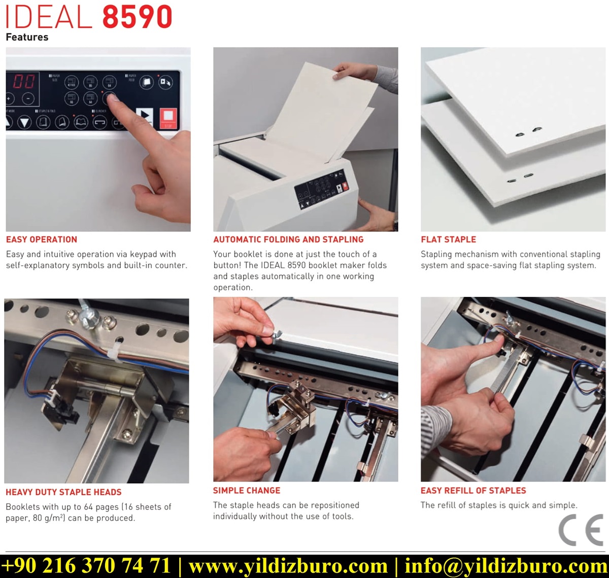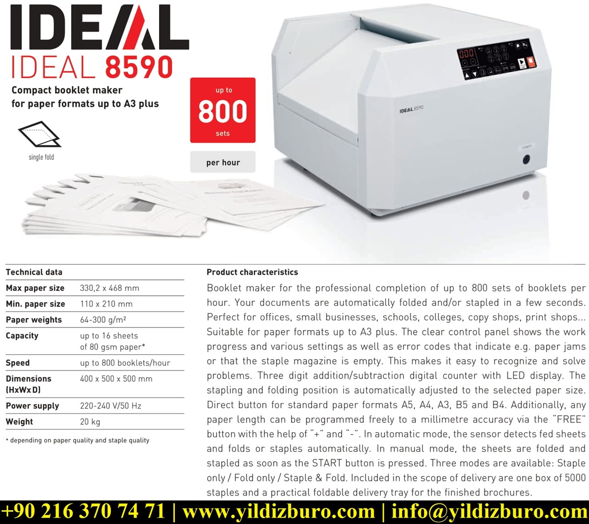IDEAL 8590 A3 Plus Tel Dikiş ve Katlama MakinesiA3 ölçüsünde katlama ve zımbalama makinesidir. Tek ..