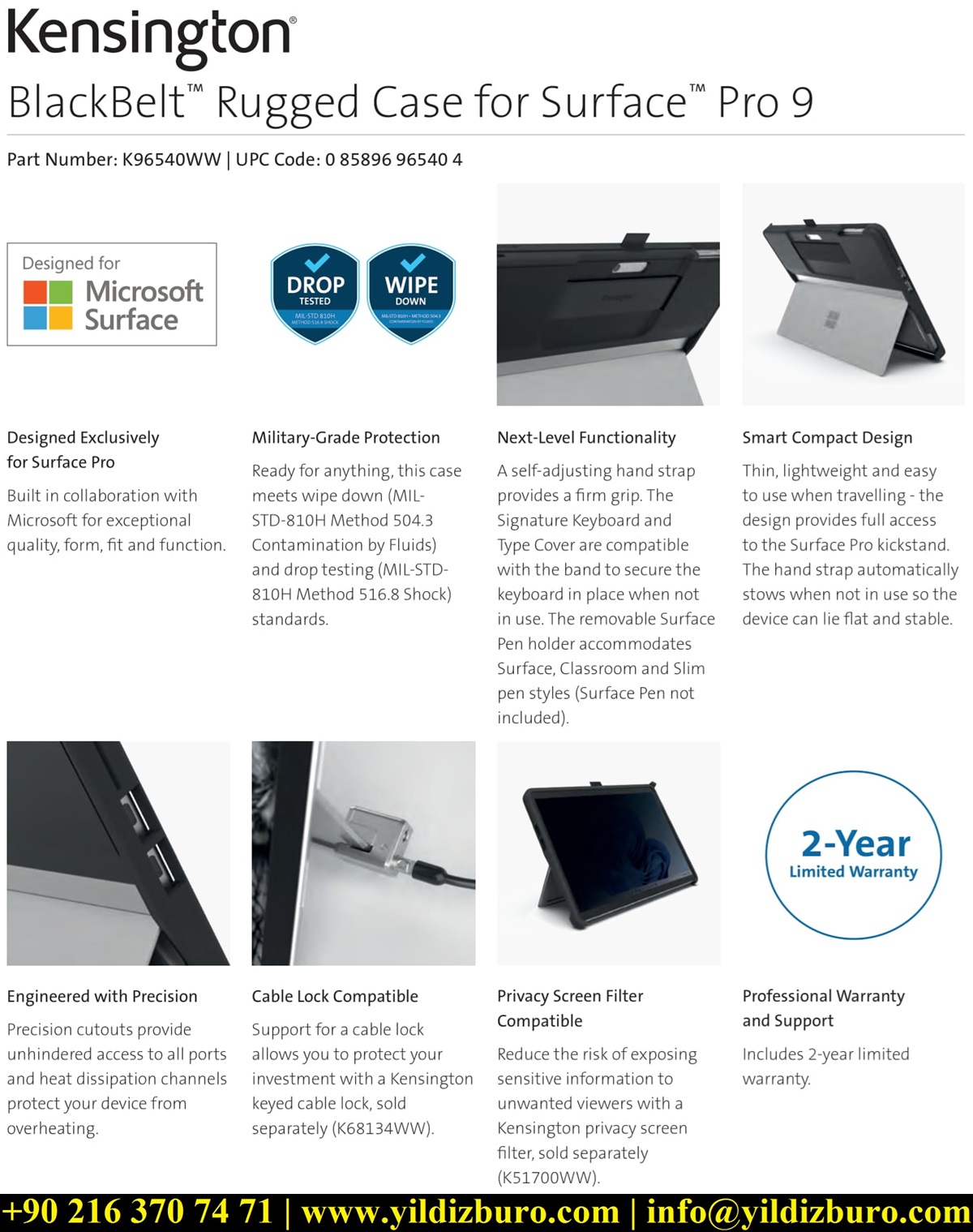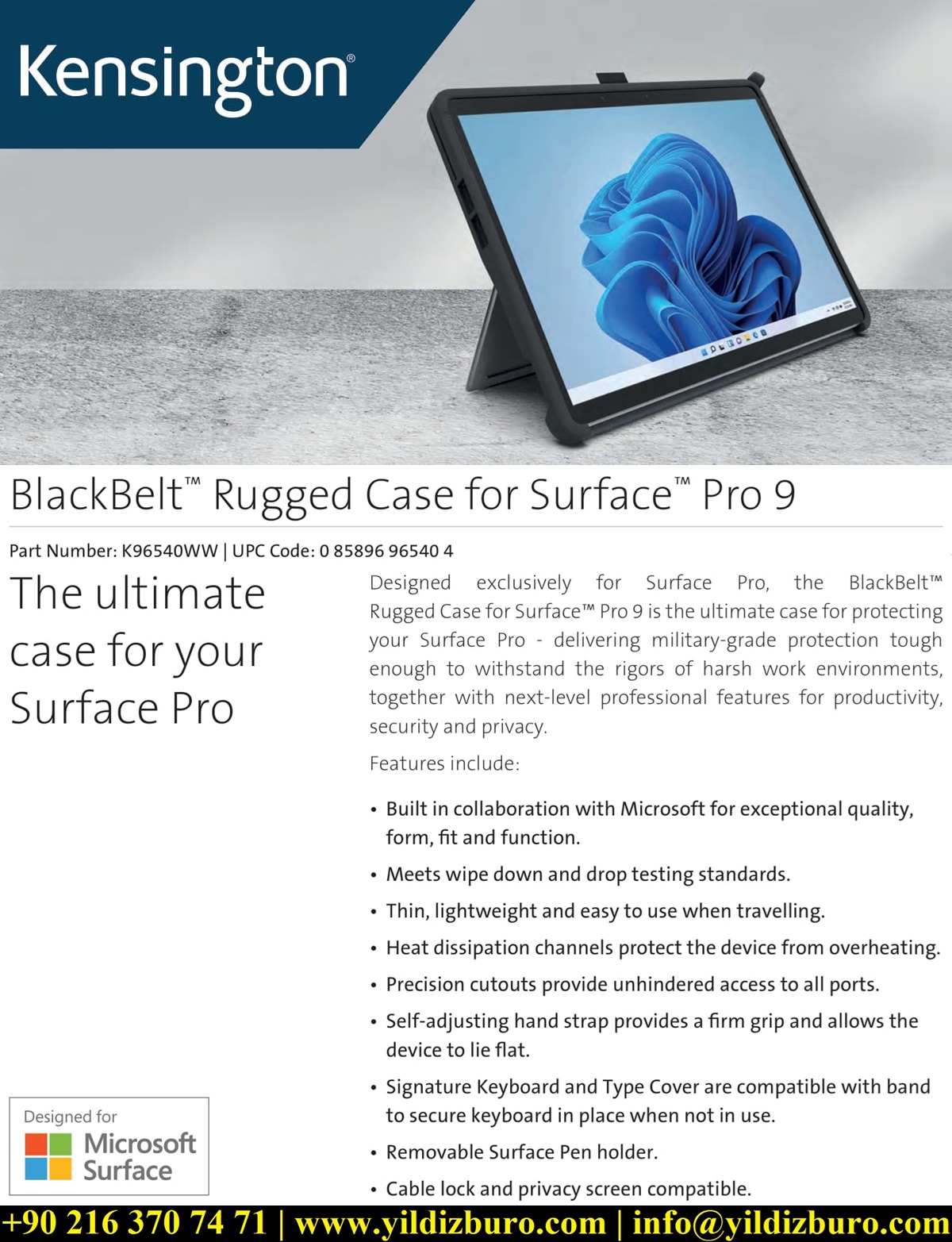 Kensington K96540WW Surface Pro 9 & 10 & 11 için BlackBelt™ Sağlam KılıfBlackBelt™ Rugged Ca..
