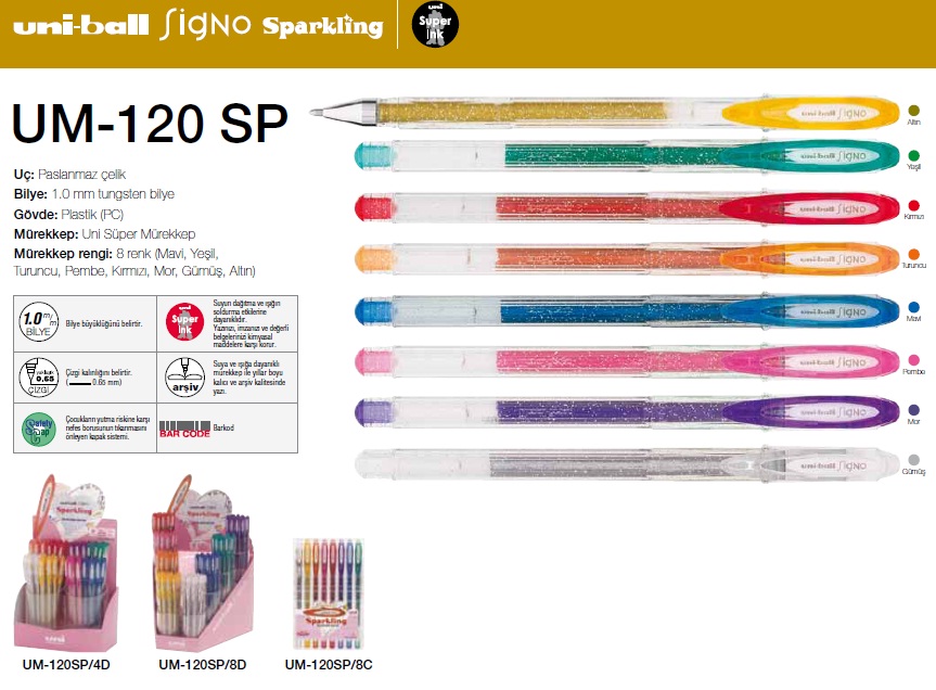 Uniball UM-120SP/8D Signo Sparkling 1.0 Jel Kalem 96'Lı SetSüper ince ucu sayesinde, form gibi sınır..