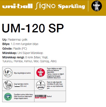 Uniball UM-120SP Signo Sparkling 1.0 Jel Kalem AltınSüper ince ucu sayesinde, form gibi sınırlı ala..