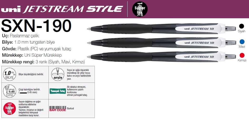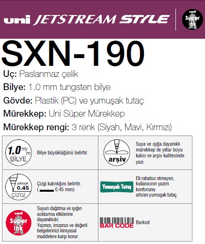Etiketler: Uniball SXN-190 Siyah JETSTREAM STYLE 1.0 RT Mürekkepli Roller Hızlı Yazı Kalemi