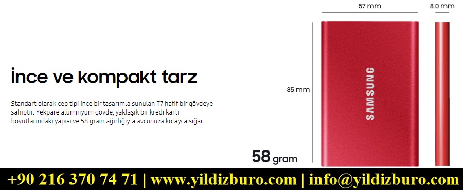 Samsung T7 Taşınabilir 1TB SSD USB 3.2 Gen 2 (Kırmızı)
