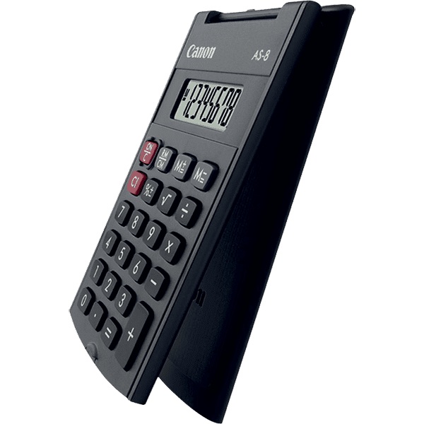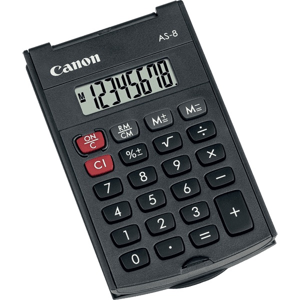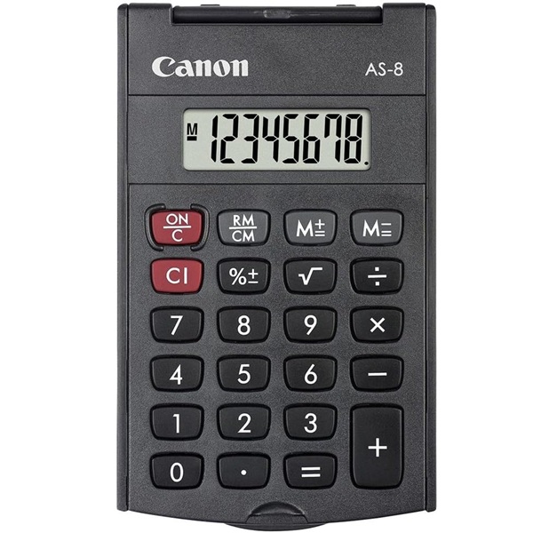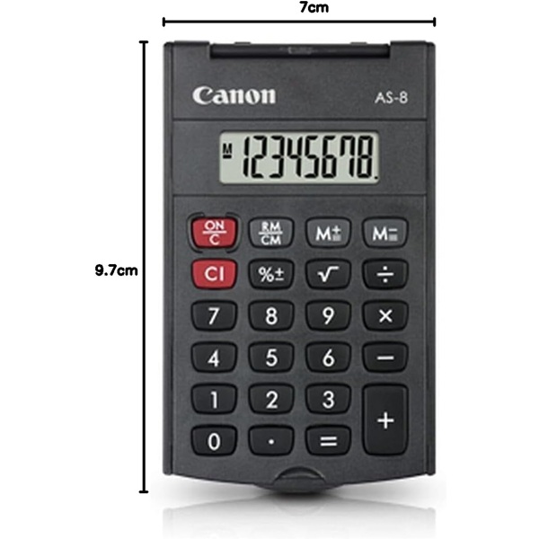 Canon AS-8 Cep Tipi Kapaklı Hesap Makinesi 8 Hane Canon AS-8 hesap makinesi, pille çalışan, LC..
