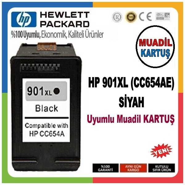 HP 901XL Siyah Muadil Mürekkep Kartuşu (CC653AE)ÜRÜNLERİMİZ YÜKSEK KALİTELİ OLUP YAZICINIZDA SORUNSU..